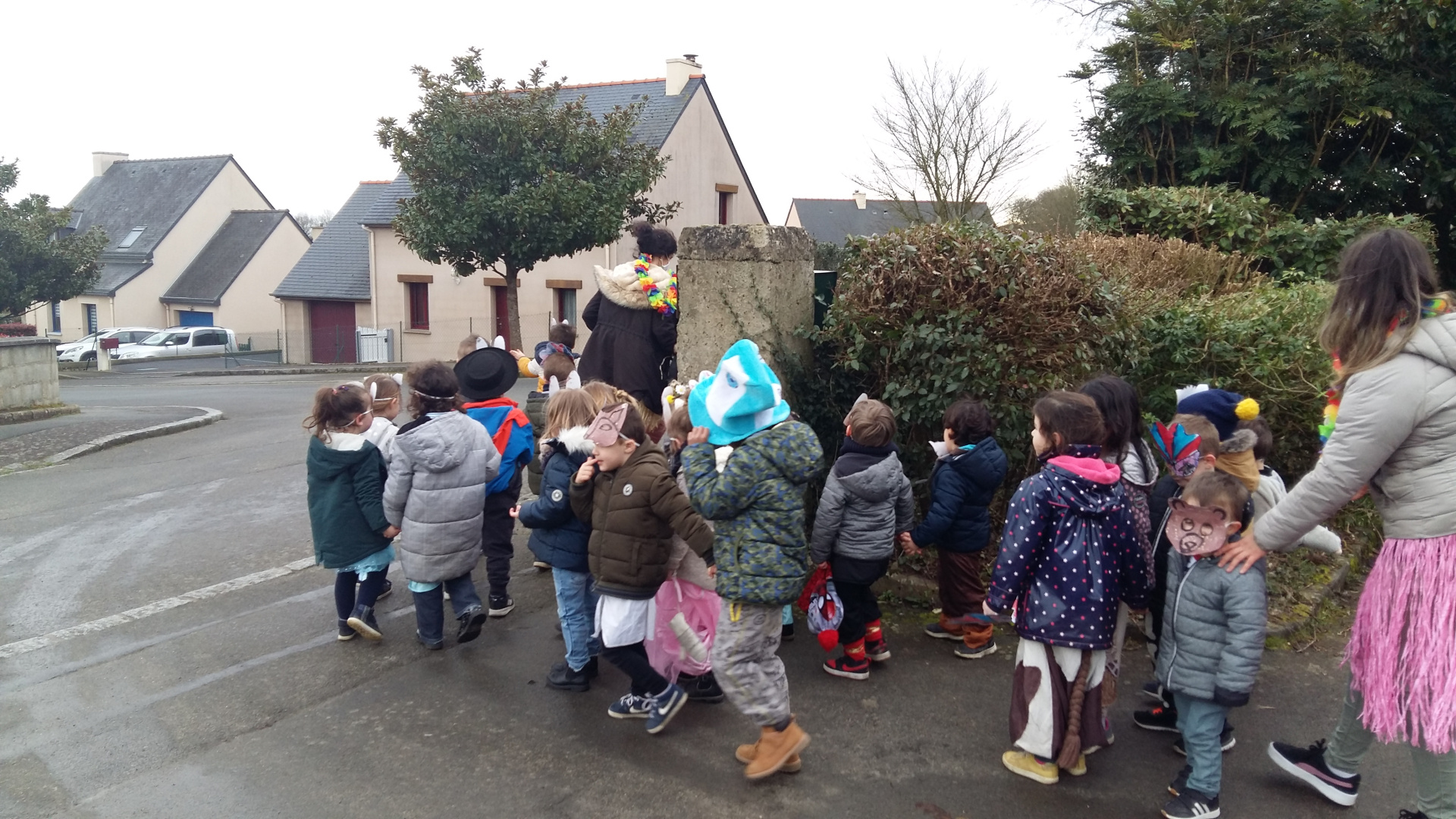 Vendredi 19 février, les élèves des trois classes de maternelle ont défilé dans l’école puis dans Saint Pierre de Plesguen. En maternelle, nous avons pris le parti de considérer les 3 classes comme un même groupe pour garder ponctuellement des projets en commun.